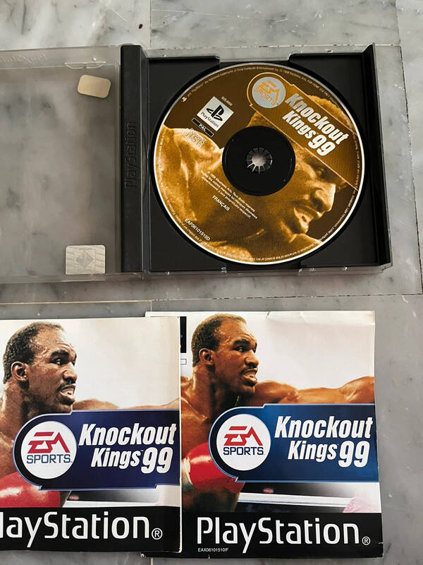 Jeu PlayStation Ps1 version PAL Française KNOCKOUT KINGS 99 Complet avec disque en très bon état quelques très fines traces avec notice de jeu jaquette dans boîtier original en bon état pas de cassures plastique légèrement usé voir les photos