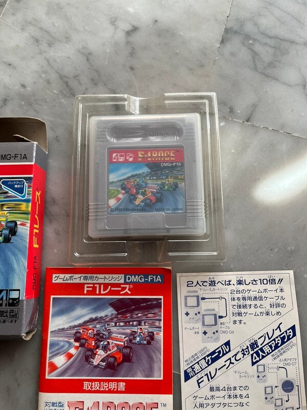 Jeu Nintendo Game boy version Jap F1 RACE Complet CIB avec cartouche de jeu cale en plastique petite Game box et notice de jeu et documents Nintendo dans boîtier cartonné d’origine en assez bon état un coin légèrement aplati voir les photos fonctionne avec toutes les Nintendo Game boy car freezone dezonnees