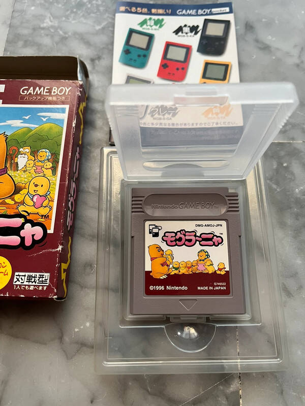 Jeu Nintendo Game boy version Japan MOLE MANIA Complet avec cartouche de jeu et petit boîtier protection de jeu il n’y a pas de notice et il y a document Nintendo publicitaire cale en plastique dans boîtier tout en très bon état voir les photos légères usures du boîtier fonctionne avec toutes les Nintendo Game boy car freezone dezonee