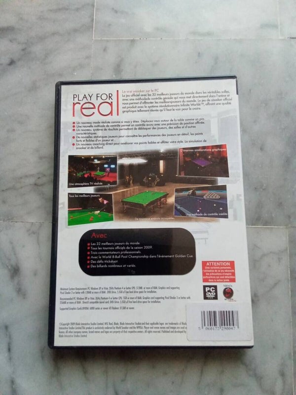Jeu WSC Real 09 simulation Snooker Billard pour PC Cd-Rom version Francaise complet en tres bon état
