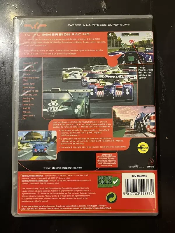 Jeu Total Immersion Racing Pc Cd-rom Complet Version Française disque Neuf boîtier notice excellent état