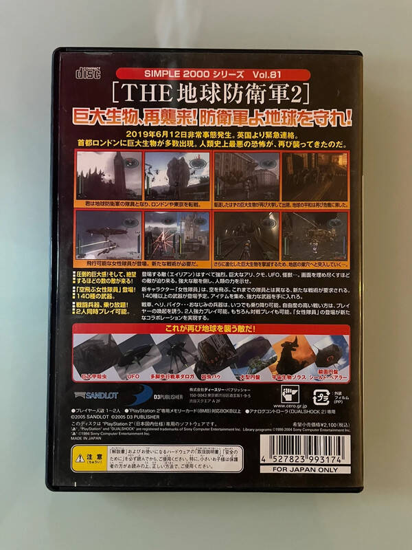 Jeu PlayStation 2 PS2 version Japan THE EARTH DEFENCE FORCE 2 Complet avec disque en excellent état aucunes traces ni rayures avec notice de jeu dans boîtier en très bon etat Import Japon