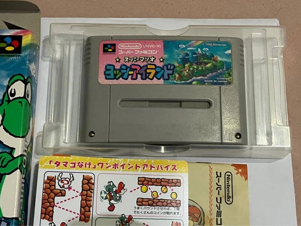 Jeu Super Nintendo Famicom SNES version Japan SUPER MARIO WORLD 2 YOSHI ISLAND Complet avec cartouche de jeu et notice et documents Nintendo et cale en plastique dans boîtier en excellent état voir les photos article en excellent état