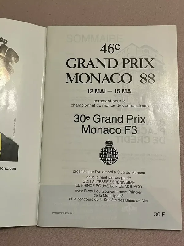 Très Rare Programme Livre Grand Prix F1 Monaco May 1988 Original