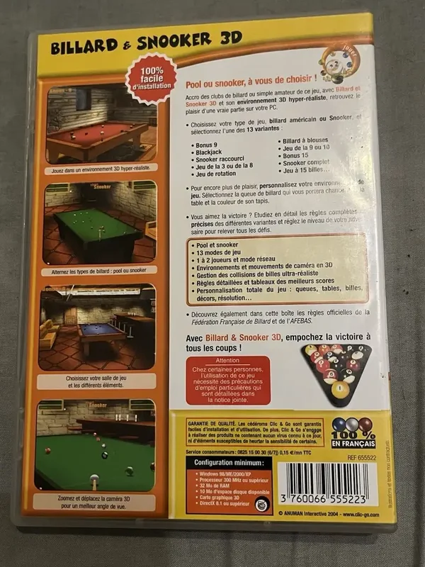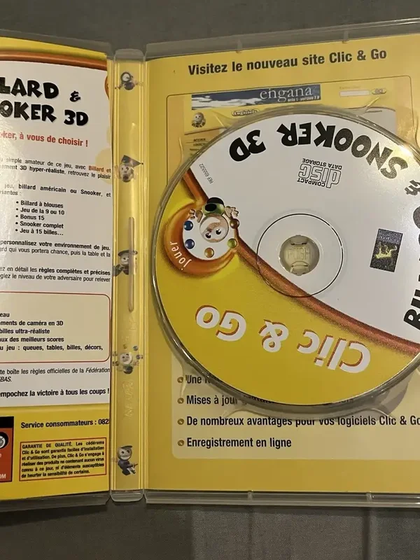 Billard & Snooker 3D Pc Cd-rom Version FR Click & Go avec disque en excellent état complet