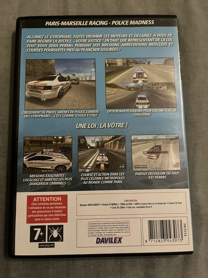 Paris Marseille RACING POLICE MADNESS Pc Cd-rom version Francaise avec disque en tres bon état il n'y a pas de notice et boitier en tres bon état voir les photos